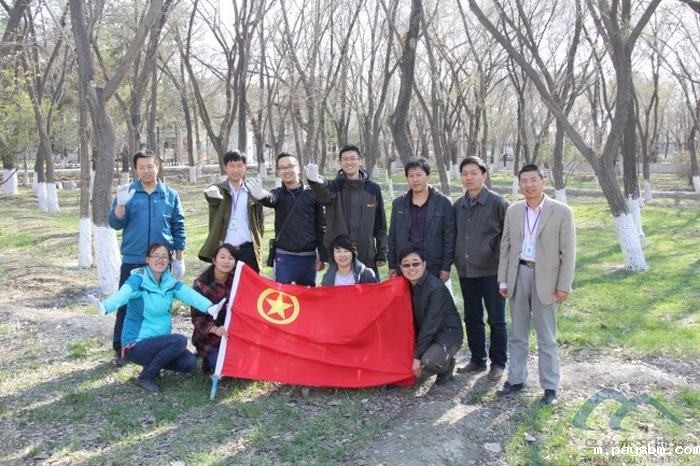2014年4月17日,单位工会、团支部为增强职工保护绿植的生态观念、宣传以绿化促文明的施工管理理念,向全体职工发起“阳春四月,绿色倡行”的活动倡议,在乌鲁木齐市植物园为树木添衣——刷石灰水的保护层。