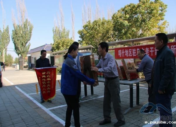 干休所所长孟向东赠送锦旗并与常务副经理郭美林亲切的握手