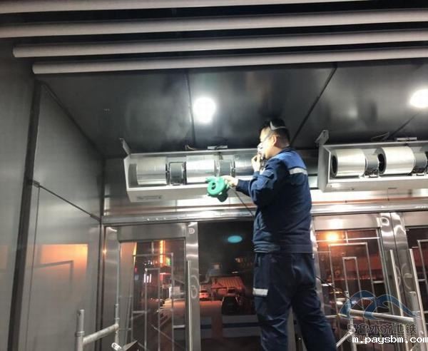为保证地铁1号线各站出入口热风幕设备安全、高效运行,12月6日夜间停运后,运营分公司设备设施部牵头组织专业技术人员对热风幕设备进行清灰维护保养。