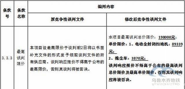 1、对 竞争性谈判文件第二章 供应商须知前附表 内容的修改: