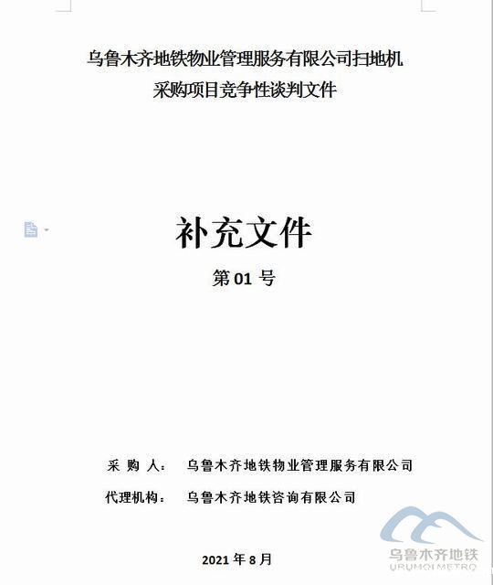 伟德1946vip物业管理服务有限公司扫地机 采购项目竞争性谈判文件补充文件第01号
