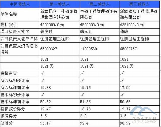 北京中昌工程咨询有限公司受 的委托对乌鲁木齐机场(北区)改扩建市政配套工程(二期)土建施工监理和乌鲁木齐机场北区改扩建工程市政配套(T4航站楼~机场东站)机场东站精装修监理的招标的评审工作已经结束,评标委员会经过评审后确定了本项目标段的中标候选人,现将中标候选人情况予以公示(时间从2021年04月23日至 2021年04月26日止),中标候选人具体情况如下: